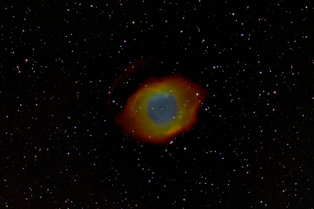Der Helixnebel NGC 7293 ist ein Planetarischer Nebel in einer Entfernung von 650 Lichtjahren und somit der nächstgelegene Planetarische Nebel im Sternbild Wassermann. Er hat eine scheinbare Helligkeit von 6,3mag und eine Winkelausdehnung von 16′ x 18′.