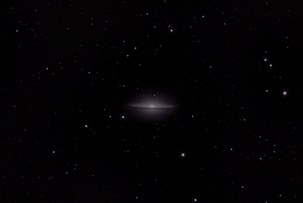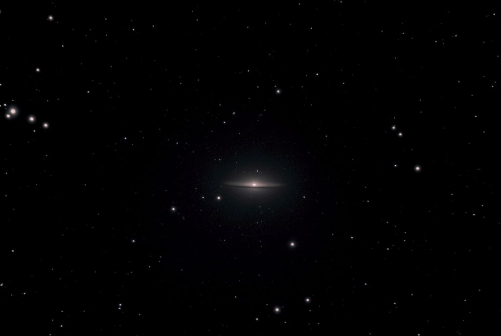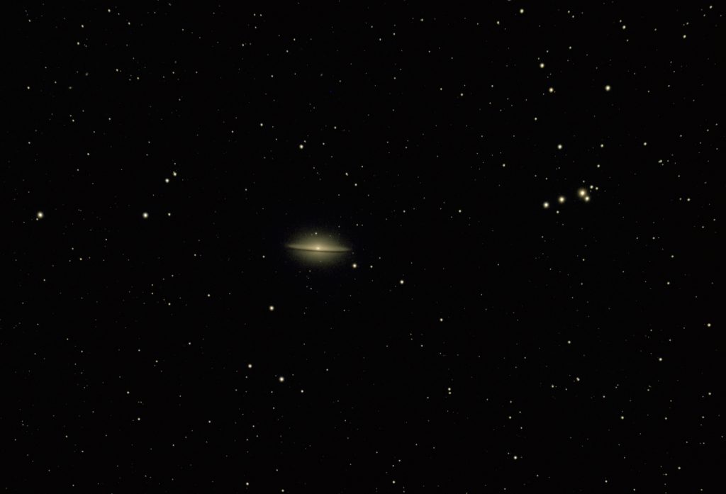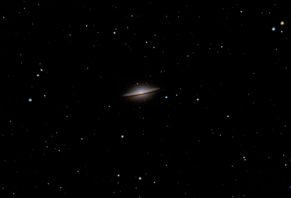 Messier 104 oder auch NGC 4594, generell auch als Sombrero Galaxie bekannt, ist eine Spiralgalxie im Sternbild Jungfrau. Sie ist aber kein Bestandteil des Virgo Galaxienhaufens da sie mit rund 30 Millionen Lichtjahren der Milchstraße viel näher ist als der Galaxienhaufen.