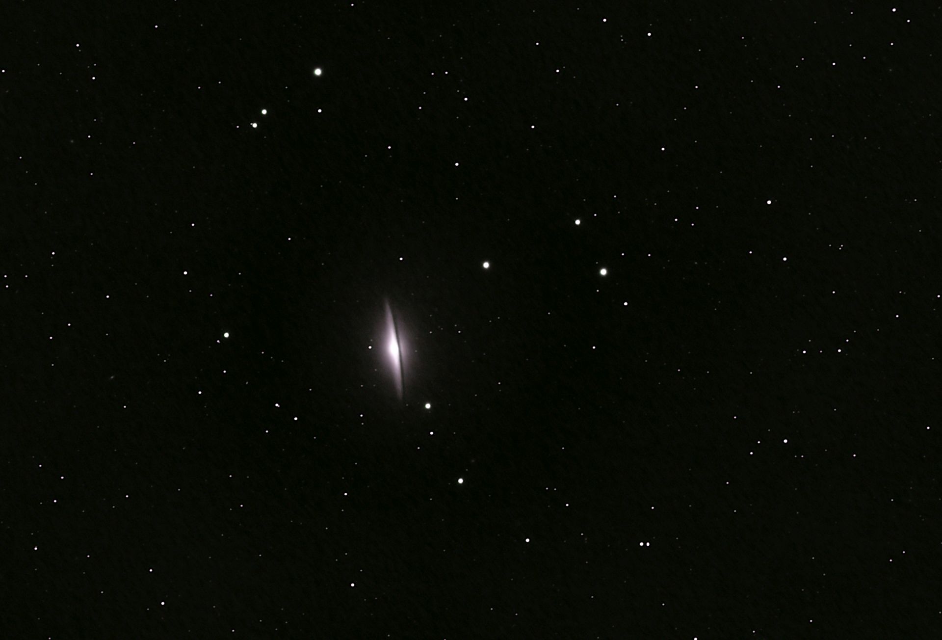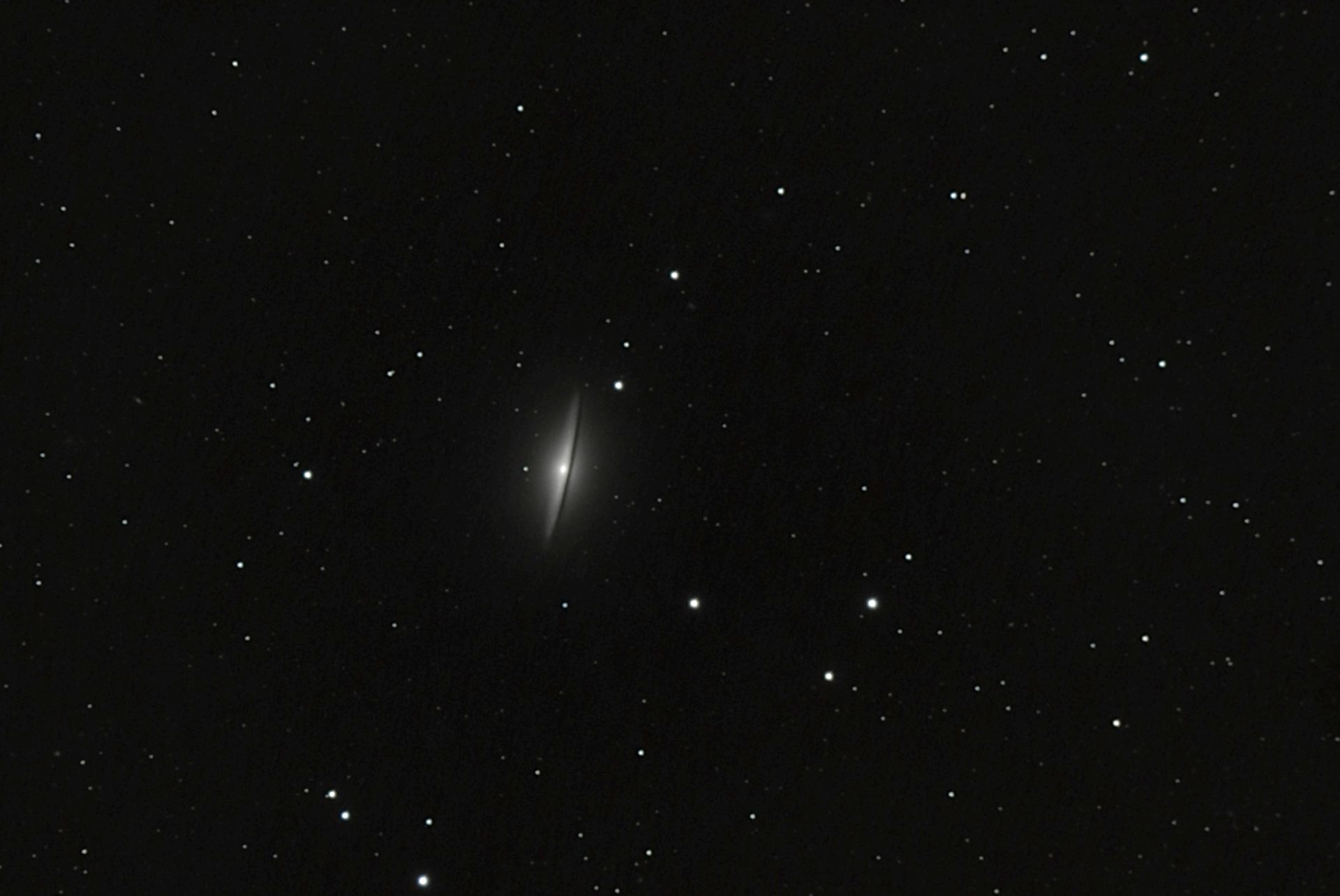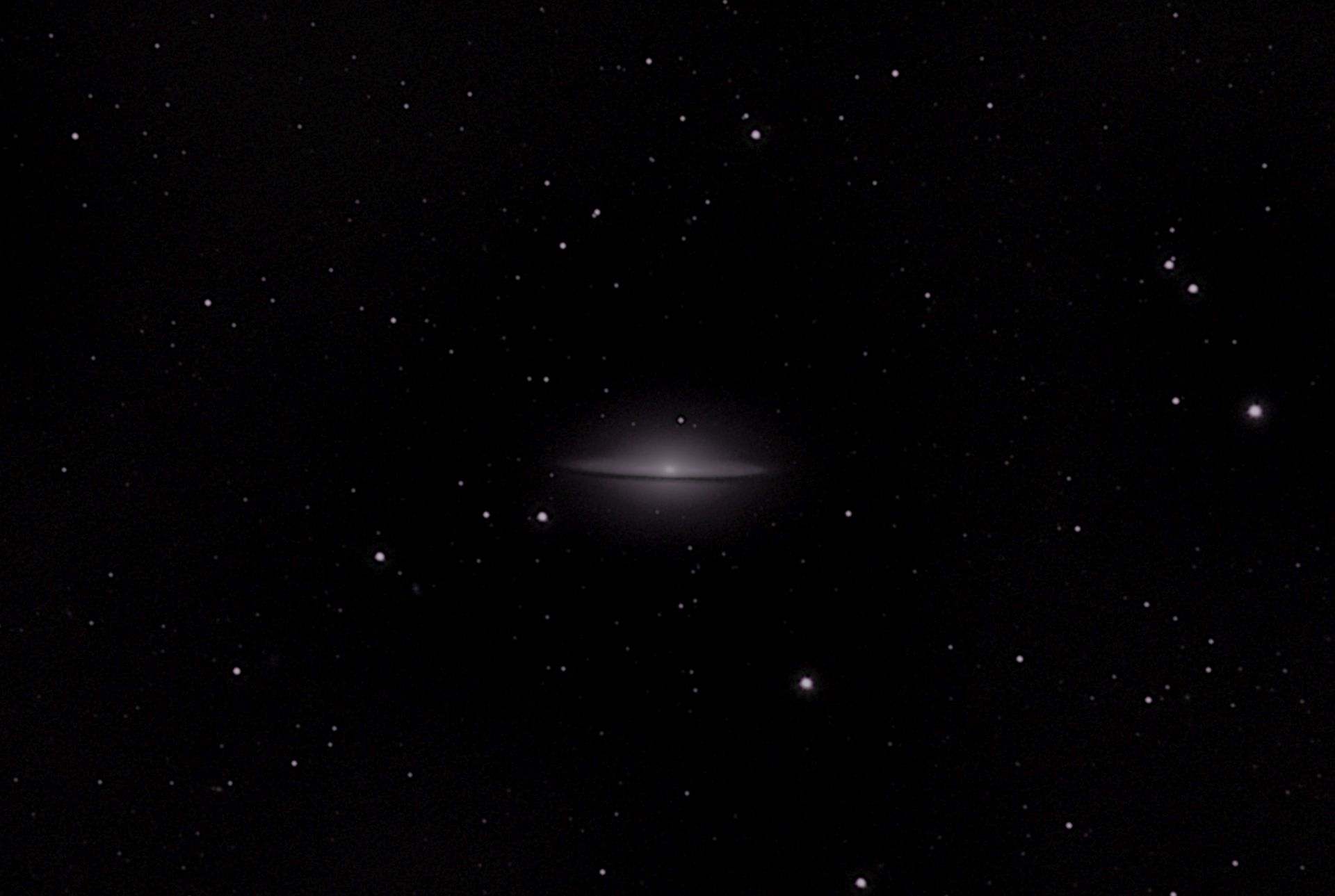 Messier 104 oder auch NGC 4594, generell auch als Sombrero Galaxie bekannt, ist eine Spiralgalxie im Sternbild Jungfrau. Sie ist aber kein Bestandteil des Virgo Galaxienhaufens da sie mit rund 30 Millionen Lichtjahren der Milchstraße viel näher ist als der Galaxienhaufen.