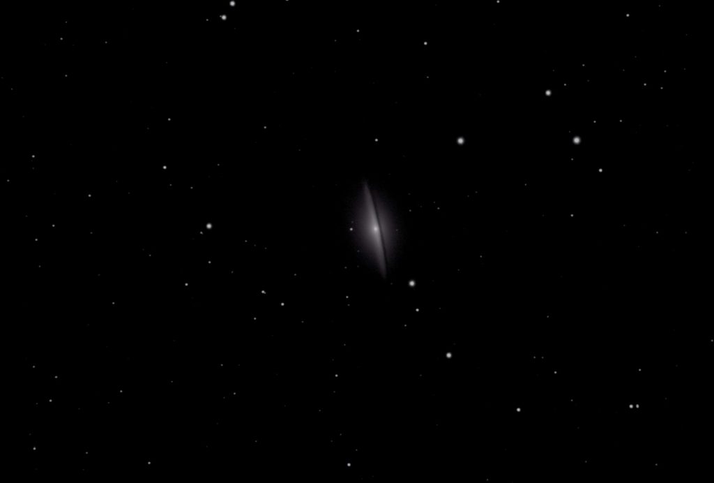 M 104 erscheint am Himmel mit einer Helligkeit von 8,3mag und hat eine Winkelausdehnung von 8,7′ x 3,5′ somit ist sie etwa ein viertel so groß wie der Vollmond. Ihr tatsächlicher Durchmesser beträgt ca. 50 000 Lichtjahre
