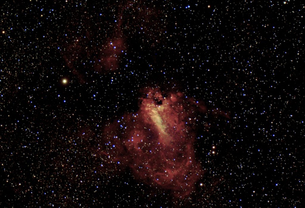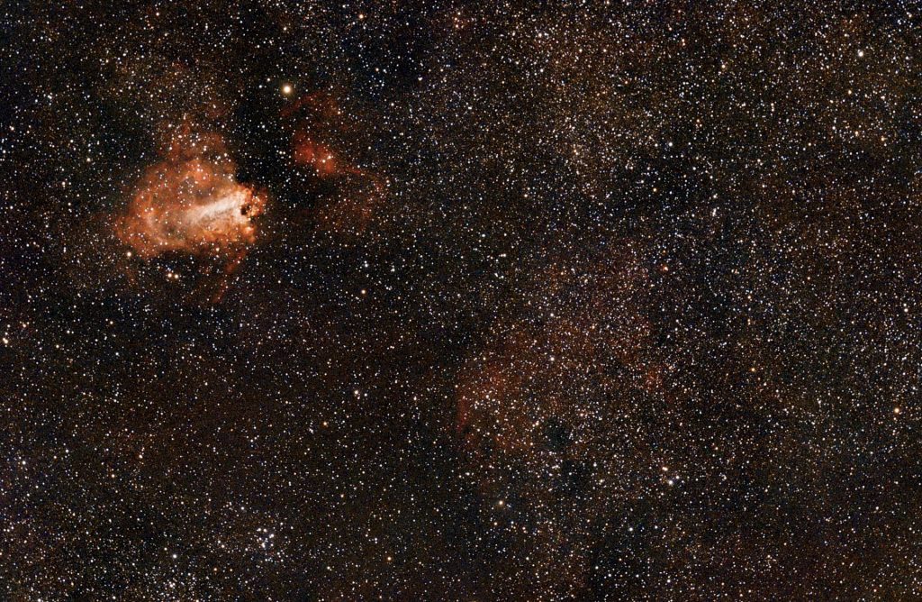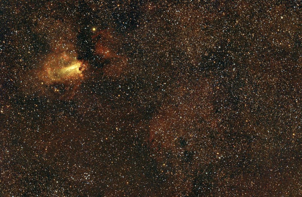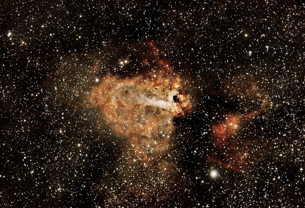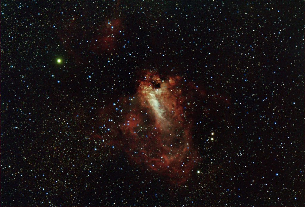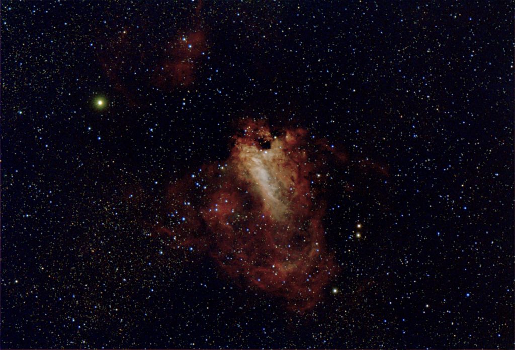 Messier 17 oder auch NGC 6618 ist ein Emissionsnebel im Sternbild Schütze. Er wird auch als Omeganebel, Schwanennebel oder Hufeisennebel genannt. Er erstreckt sich über einen Bereich von 15 Lichtjahren (im sichtbaren Licht), Am Himmel hat eir eine scheinbare Helligkeit von 6mag und einen Durchmesser von 15′.