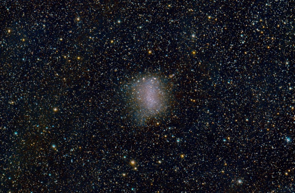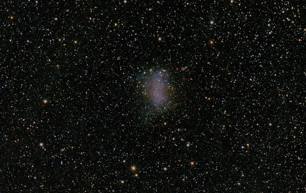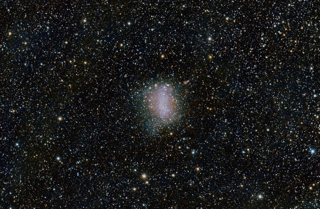 Die Galaxie NGC 6822 oder auch Caldwell 57 oder auch Barnards Galaxie, ist eine irreguläre Zwerggalaxie und ein direkter Nachbar unserer Milchstraße in rund 1,6 Millionen Lichtjahren Entfernung, und somit wesentlich näher als der Andromeda Nebel M31 und MItglied der Lokalen Gruppe. Sie befindet sich sehr weit Südlich im Sternbild Schütze und beinhaltet ungefähr 10 Millionen Sterne. Am Nachthimmel erscheint sie mit einer Scheinbaren Ausdehnung von 15,4′ x 14,5′ mit einer Helligkeit von 8,7 mag. Um Barnard Galaxie zu sehen muss man so ziemlich Zentumshah duch die Milchstraßen Ebene blicken